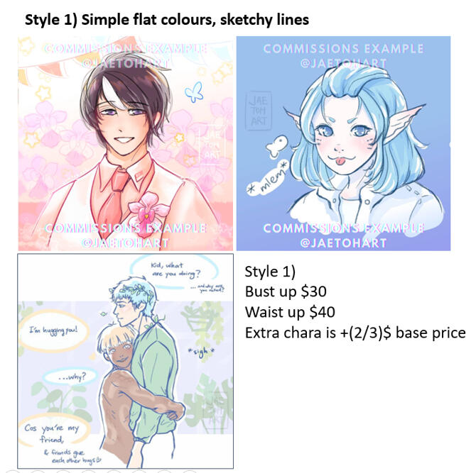 Feel free to DM me on IG @jaetohart for any enquiries. Sometimes I may be open to comms requests even if my general ones are closed.